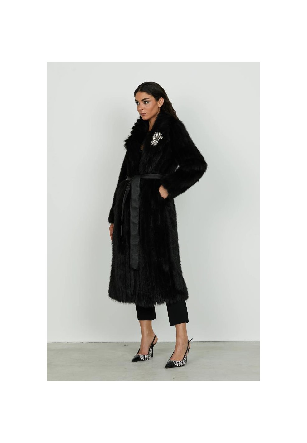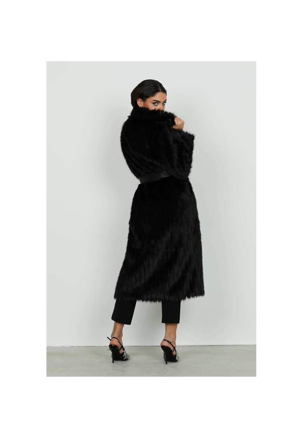 La sua linea lunga e avvolgente protegge dal freddo mantenendo un’allure chic, mentre la cintura in ecopelle tono su tono consente di definire la silhouette con armonia, sottolineando delicatamente il punto vita e permettendo di regolare la vestibilità a seconda delle esigenze.