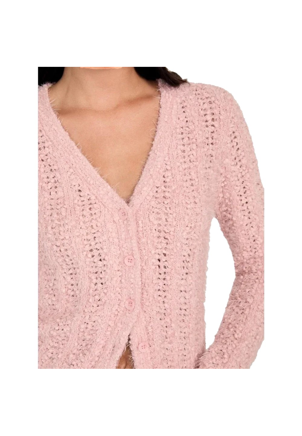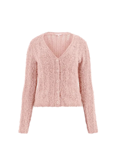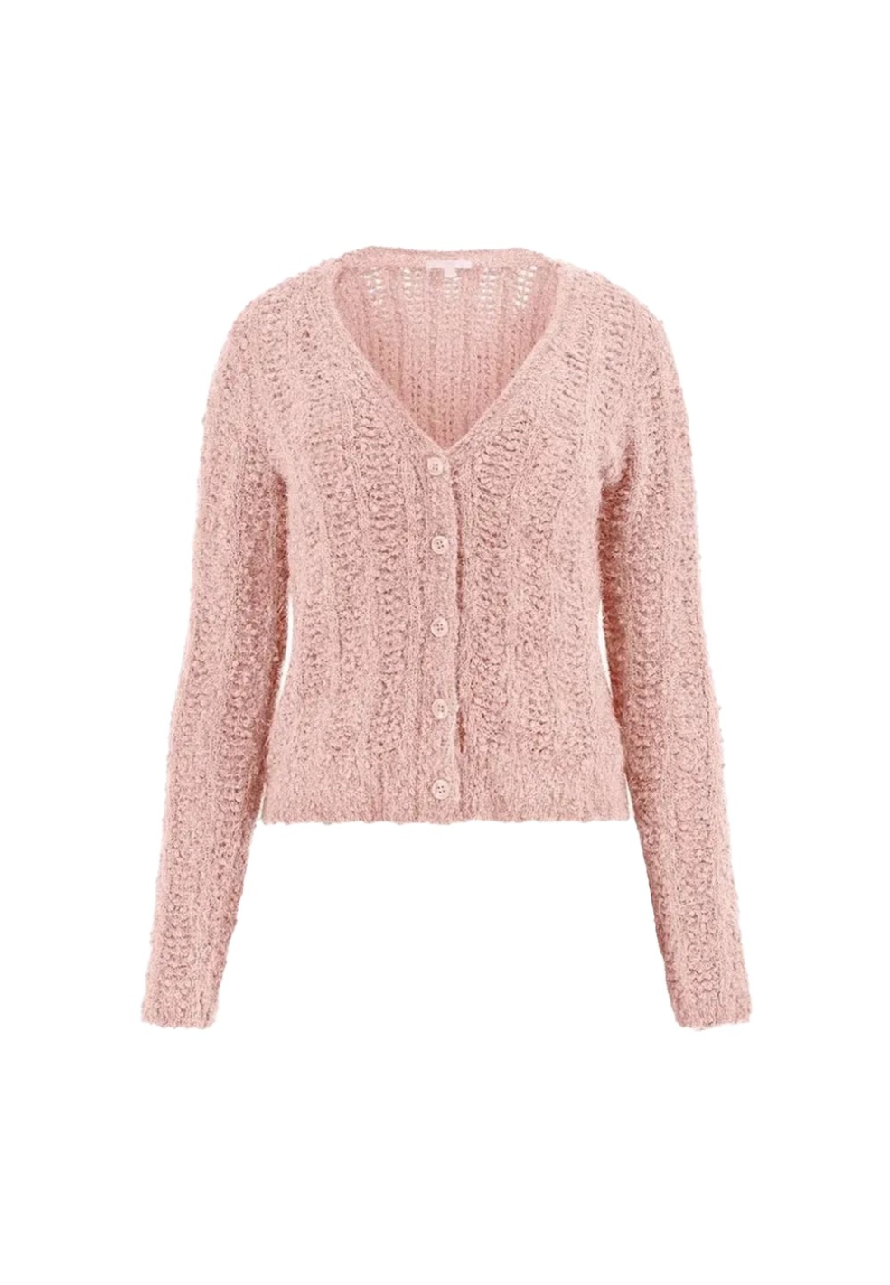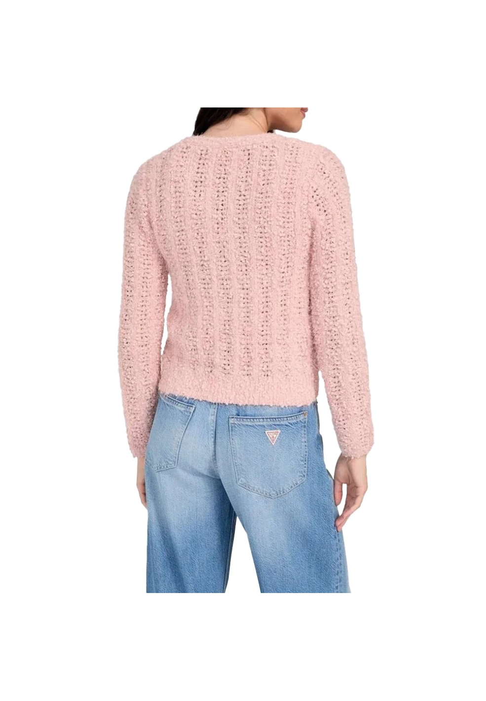 Il colore neutro e i dettagli discreti lo rendono sofisticato senza essere eccessivo, seguendo il DNA del brand Guess che unisce modernità e glamour. Un cardigan che non solo completa l’outfit, ma diventa protagonista di look sia casual che più eleganti, sempre con un tocco chic.
