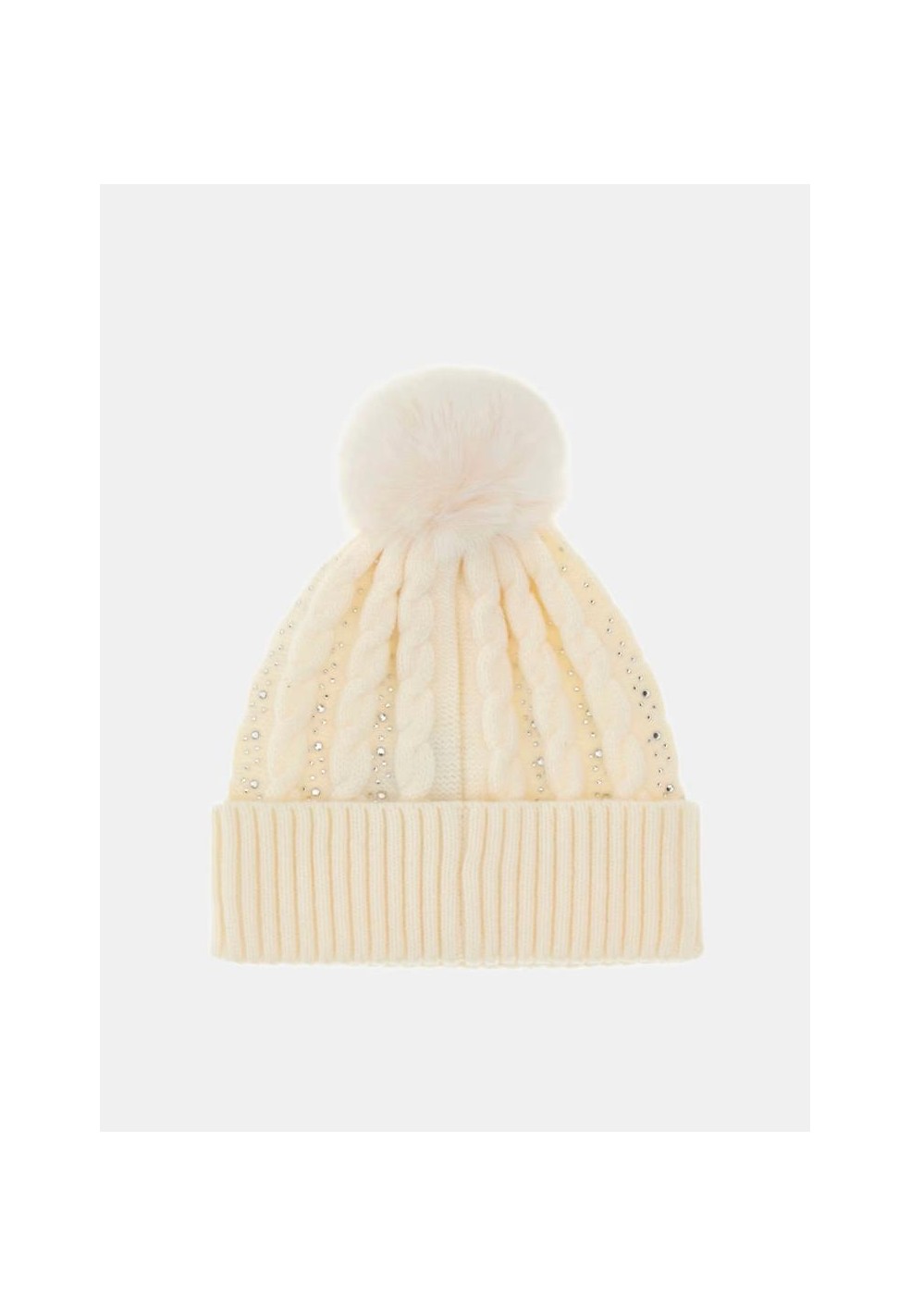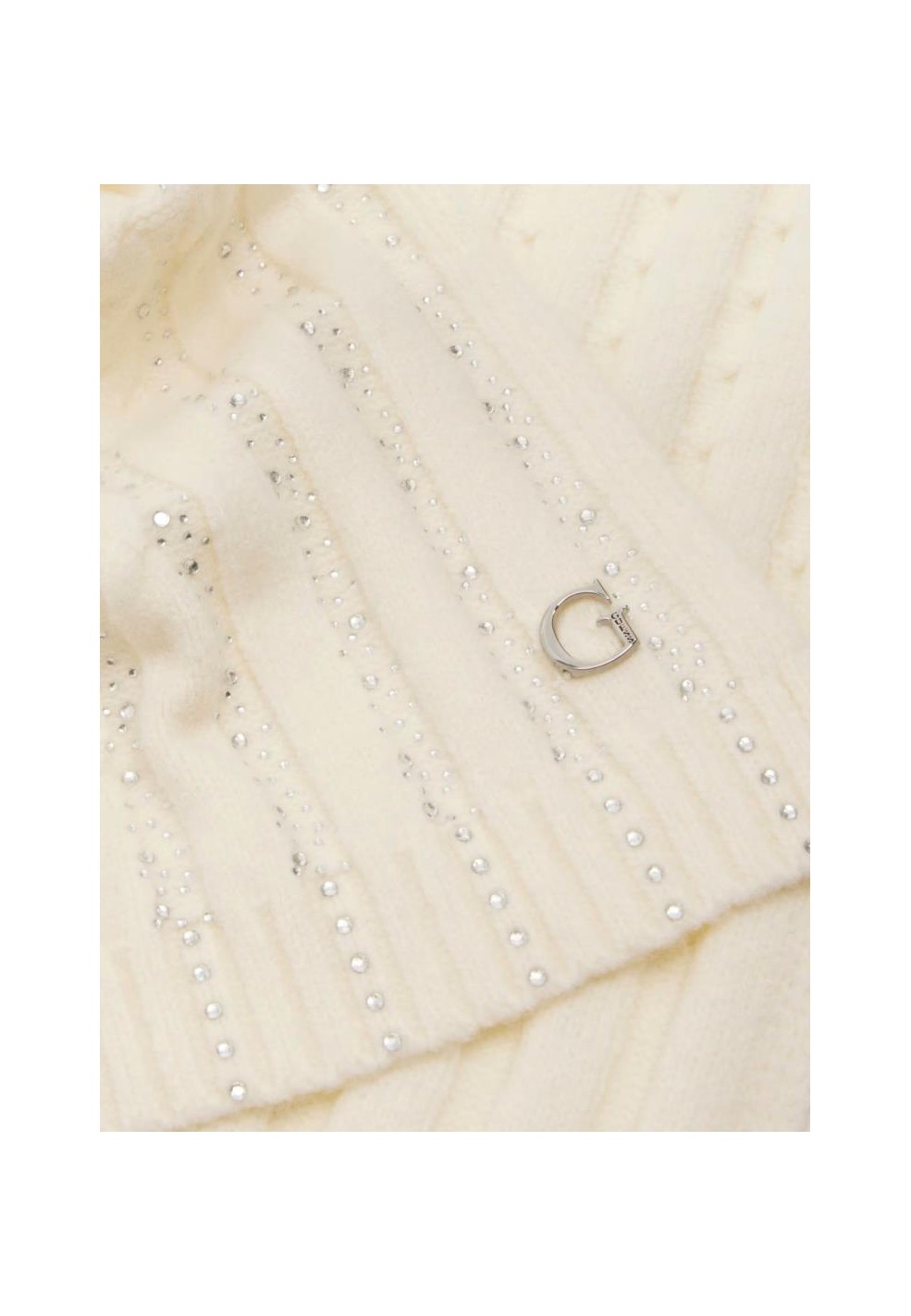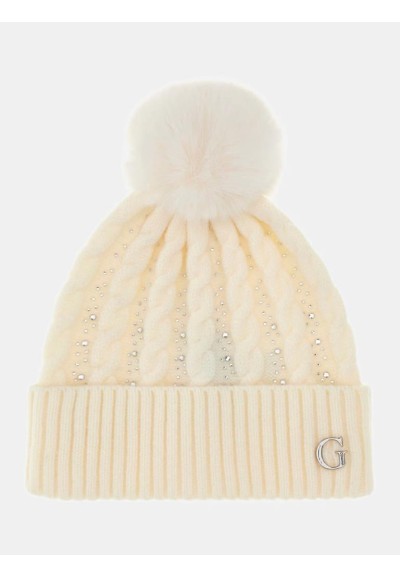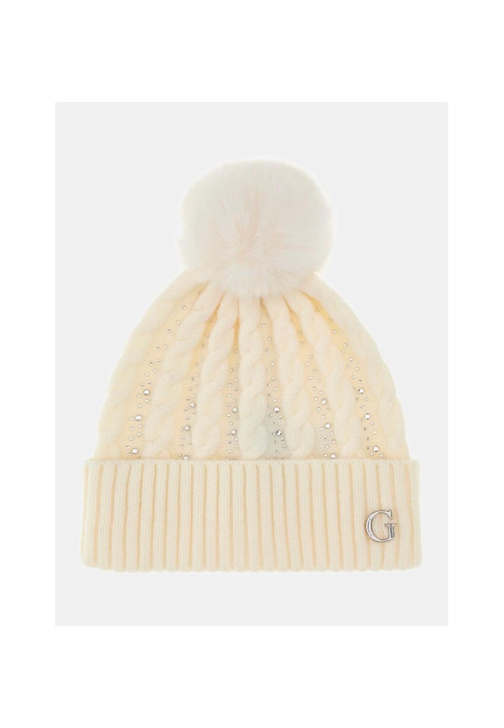 La lavorazione a maglia fine dona texture e carattere al capo, mentre il logo Guess frontale impreziosito da strass illumina la parte frontale con un tocco glamour inconfondibile. Il pompon morbido sulla sommità aggiunge una nota sbarazzina ma elegante, rendendo questa cuffia un accessorio adatto a ogni occasione: perfetta per la città, per il tempo libero o per una giornata sulla neve.