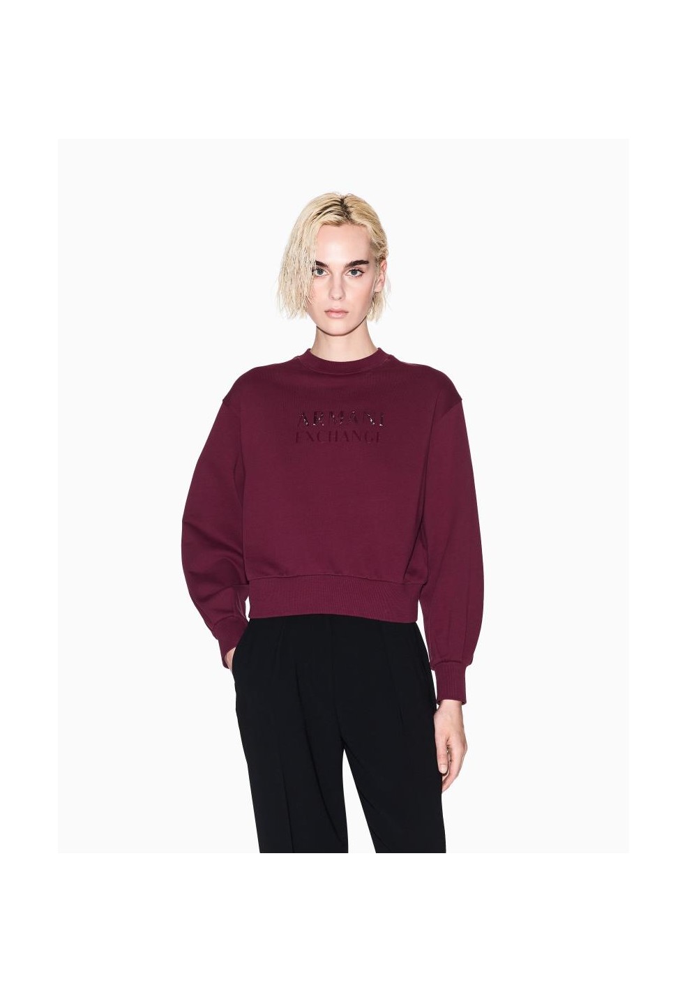 Protagonista assoluto è il maxi logo frontale con effetto lucido, elemento distintivo che racconta lo spirito audace e cosmopolita di Armani Exchange. Il marchio diventa così non solo una firma di qualità, ma un vero e proprio statement fashion, capace di trasformare una felpa in un pezzo iconico.