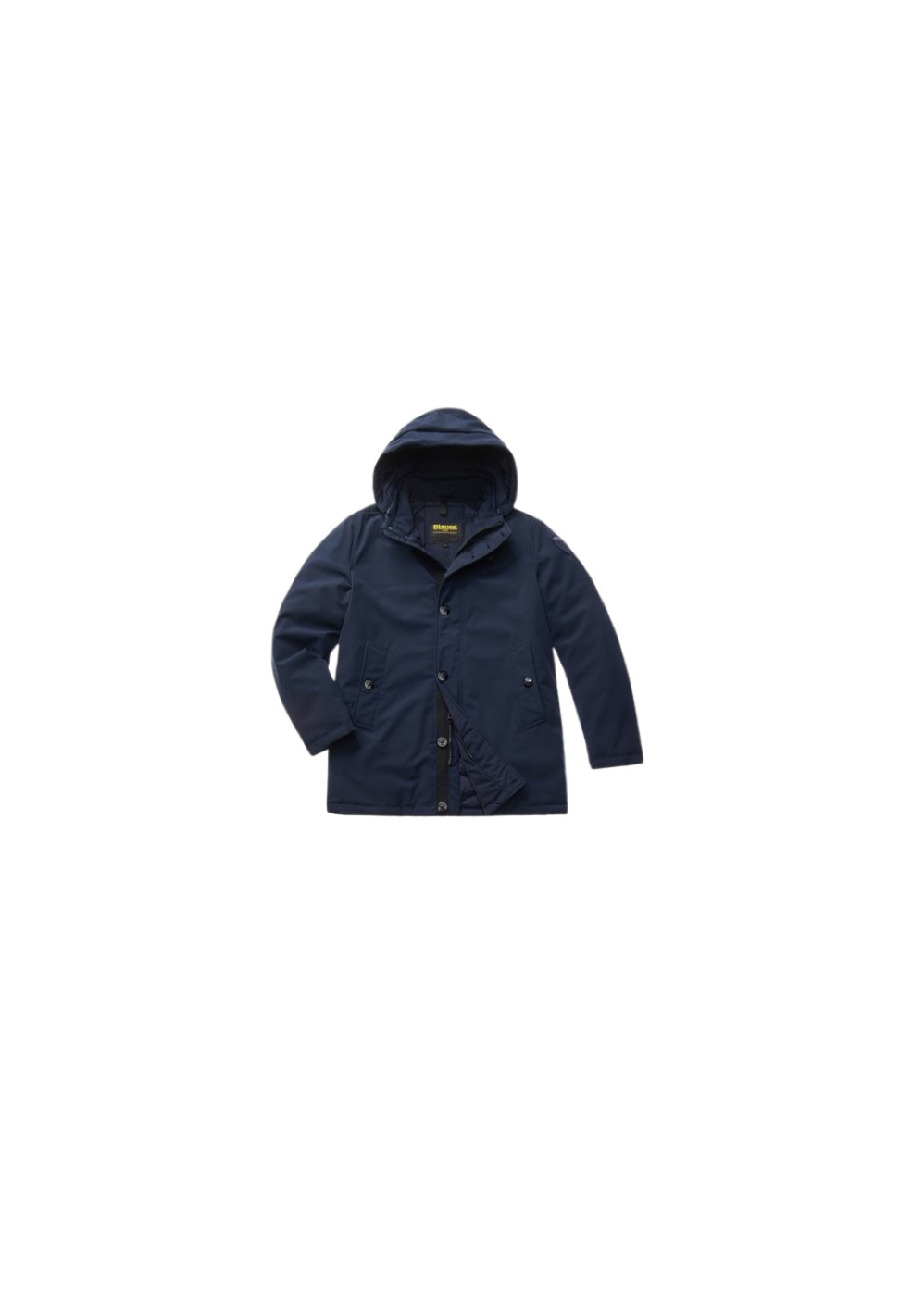 La chiusura con zip a tutta lunghezza e bottoni a chiodo conferisce solidità e protezione dal vento, mentre le tasche laterali con bottone e le tasche interne con velcro garantiscono funzionalità e spazio per portare con sé gli oggetti essenziali. Completano il design i dettagli esclusivi Blauer, come la patch sul braccio e il passante con logo, simboli di autenticità e qualità.