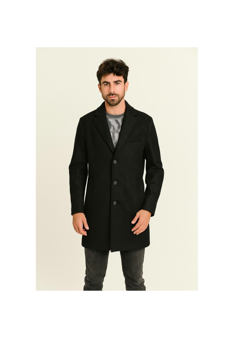 La chiusura frontale a tre bottoni dona un aspetto ordinato e formale, ideale sia per abbinamenti più eleganti che per outfit casual curati. I rever sartoriali conferiscono una linea essenziale e maschile, mentre lo spacco centrale sul retro assicura una maggiore libertà di movimento, rendendo il cappotto pratico e confortevole durante tutta la giornata.
