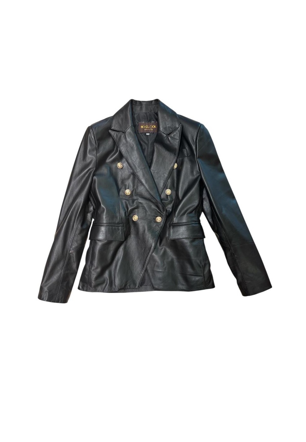 Il design doppiopetto con sei bottoni dorati dona eleganza e raffinatezza, richiamando l’estetica dei blazer sartoriali, ma con un carattere deciso grazie al materiale in pelle. Gli ampi revers ne sottolineano l’impronta elegante, mentre le tasche con patta completano la struttura, aggiungendo funzionalità senza rinunciare allo stile.