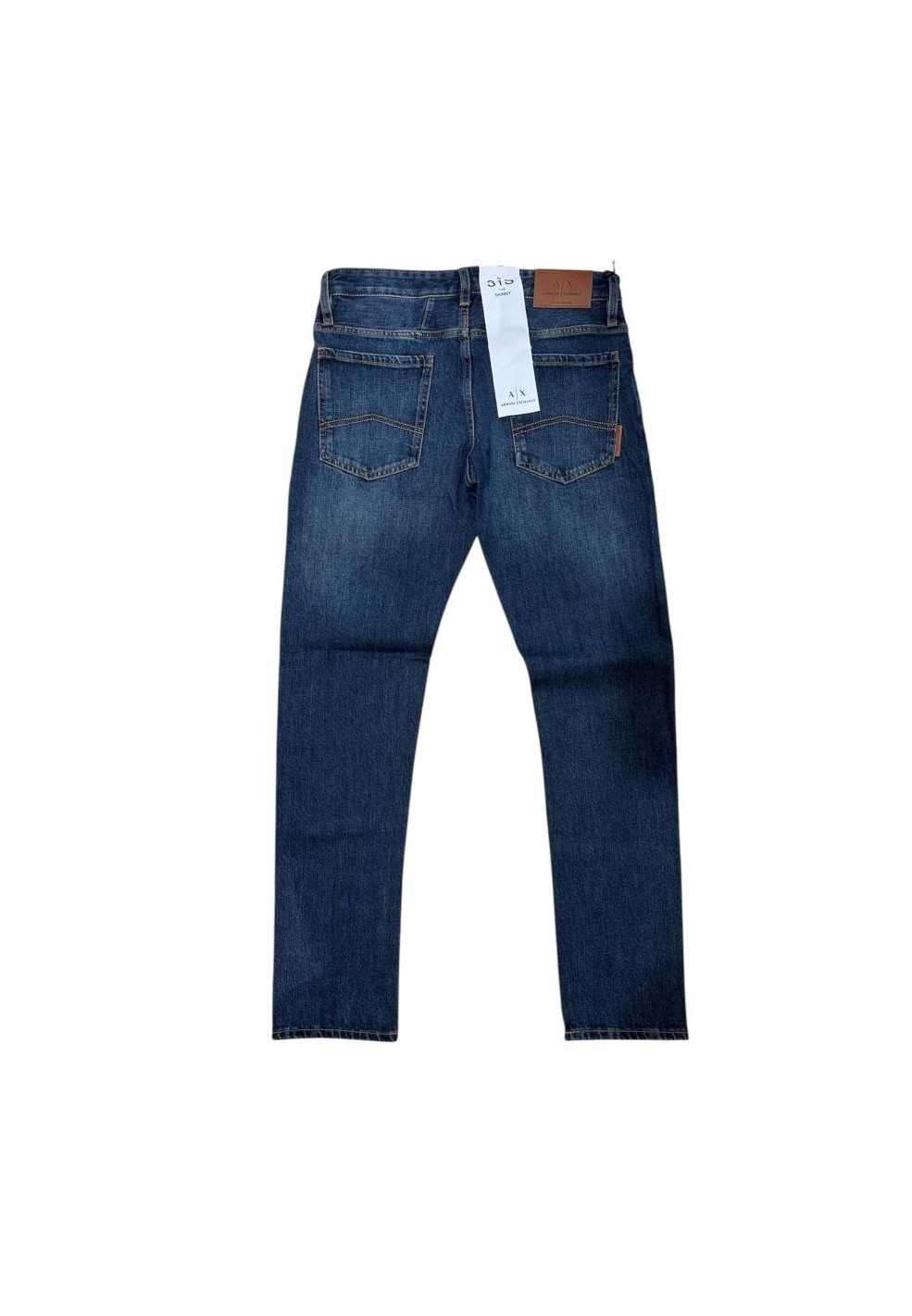 Il design skinny fit si distingue per la linea aderente e slanciata, ideale per chi ama uno stile giovane e dinamico. Il lavaggio blu medio con leggere sfumature sulle cosce e sulle ginocchia crea un effetto vissuto elegante e discreto, adatto sia per il tempo libero che per occasioni informali. Le cuciture a contrasto esaltano la struttura del capo, mentre i dettagli iconici Armani Exchange – come il ricamo A|X sul taschino e la patch in pelle sul retro – confermano l’autenticità e l’attenzione ai particolari tipica del brand.