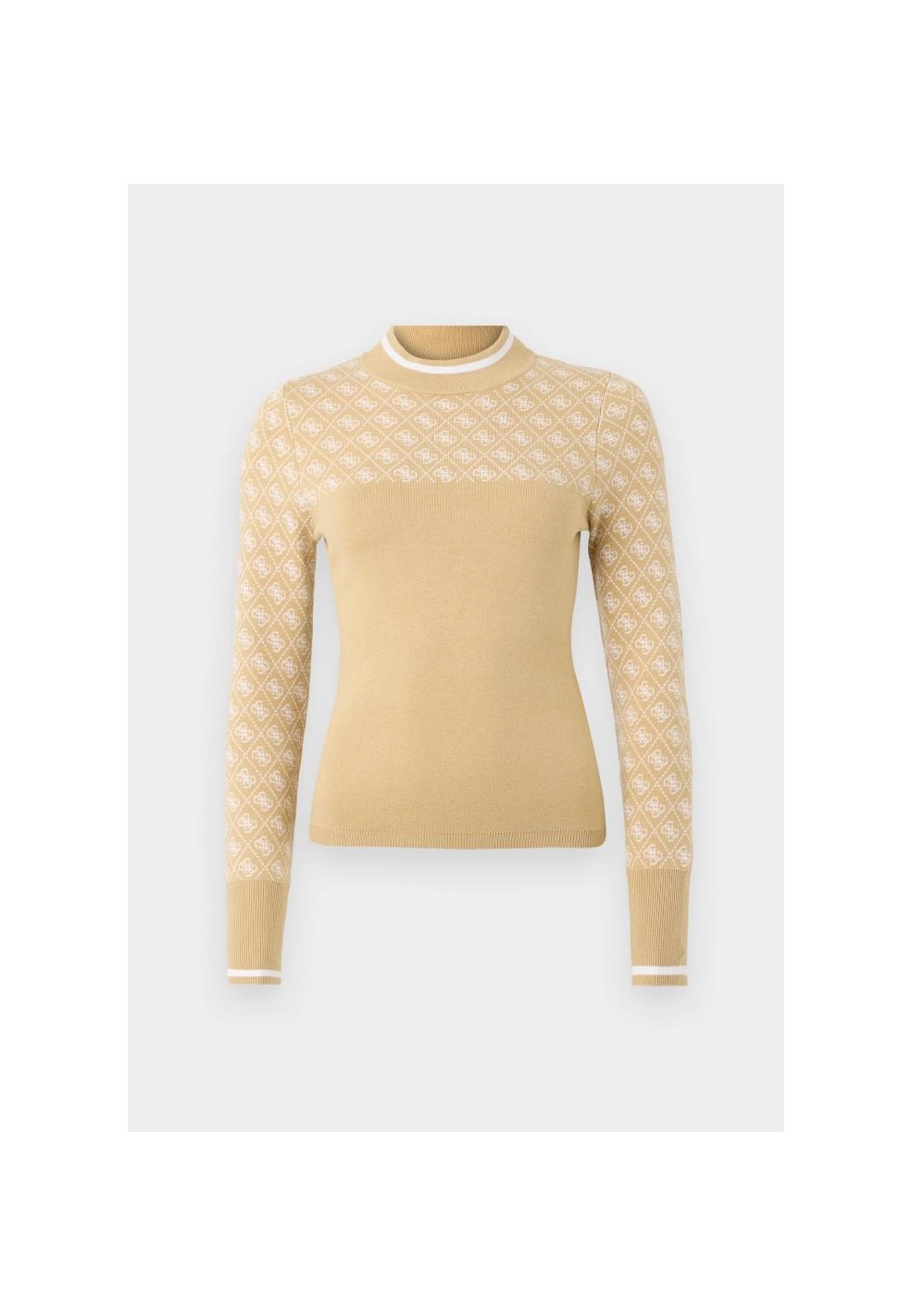 Il design presenta un collo a lupetto che offre protezione dal freddo e un aspetto raffinato, perfetto per la stagione autunno-inverno. Le maniche lunghe e la vestibilità regular assicurano libertà di movimento e praticità, adattandosi facilmente a look diversi. L’elemento che rende questo maglione unico è il logo jacquard 4G Guess, proposto in un motivo all over sulla parte superiore e sulle maniche, che conferisce al capo uno stile riconoscibile e sofisticato.