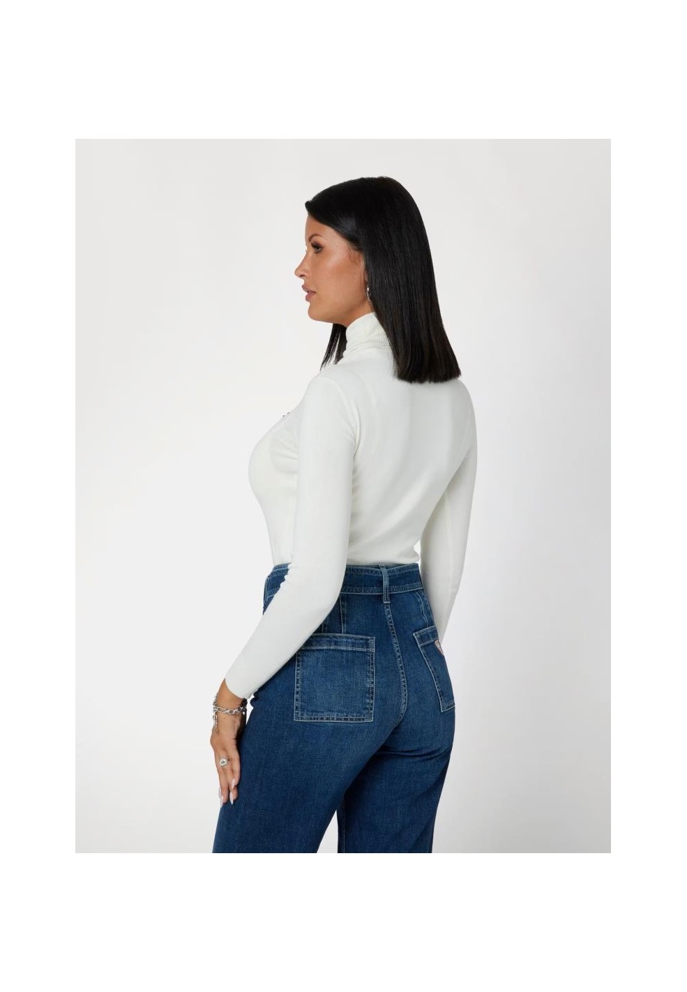 Il design include un collo a lupetto che protegge dal freddo con stile, maniche lunghe per una copertura ottimale e rifiniture a costine sul collo, sui polsini e sull’orlo, che donano al capo un aspetto curato e versatile. È un capo pensato per adattarsi a diverse occasioni, dal lavoro al tempo libero, abbinandosi perfettamente a jeans, pantaloni slim o gonne a vita alta.