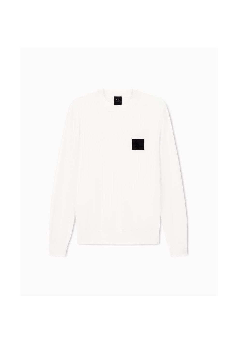 Il design si distingue per le linee pulite ed essenziali: lo scollo girocollo classico, le maniche lunghe e i polsini e fondo a costine offrono una vestibilità comoda e al tempo stesso ordinata. Il dettaglio che caratterizza il capo è il patch applicato sul petto, un elemento discreto ma distintivo che richiama l’identità giovane e urbana di Armani Exchange, trasformando un maglione basico in un capo di tendenza.