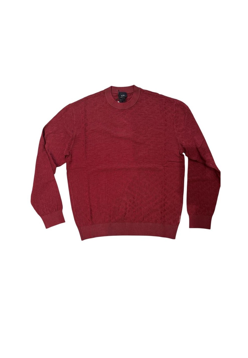 Armani Exchange Maglia Uomo Girocollo in Misto Cotone Jacquard a Maniche Lunghe