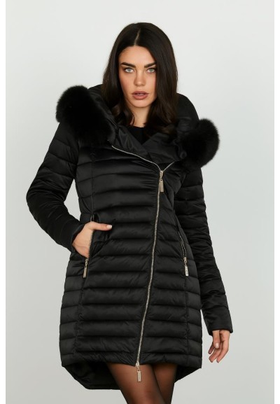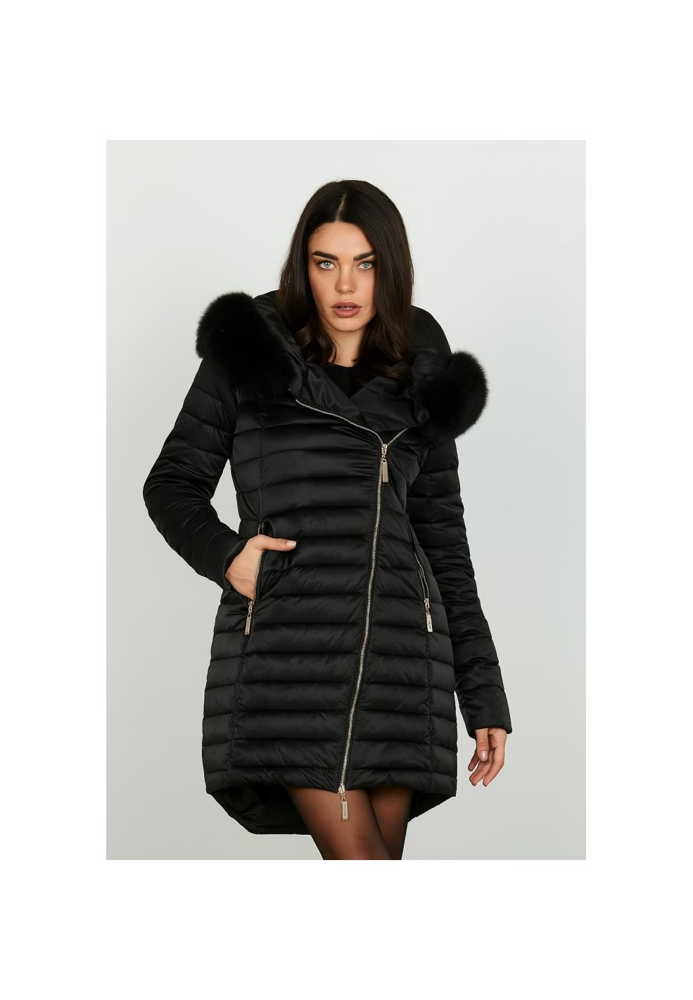 Relish Piumino Donna Ultar Lungo con Collo in Ecopelliccia e Zip