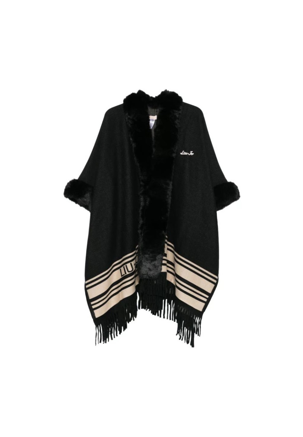 Dettagli: Collo in ecopelliccia, frange sull’orlo, logo Liu Jo a contrasto