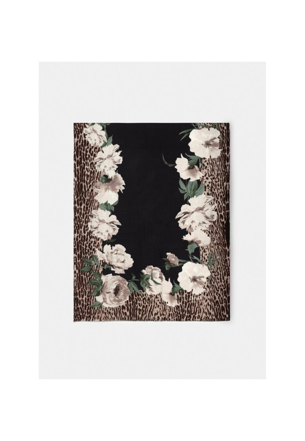 Il motivo animalier abbinato a delicati elementi floreali unisce due simboli di femminilità — grinta e romanticismo — creando un design armonioso e sofisticato. La tonalità lilla, luminosa e raffinata, aggiunge un tocco di dolcezza al look, rendendo questa stola perfetta per completare cappotti, trench o giacche nei toni neutri.