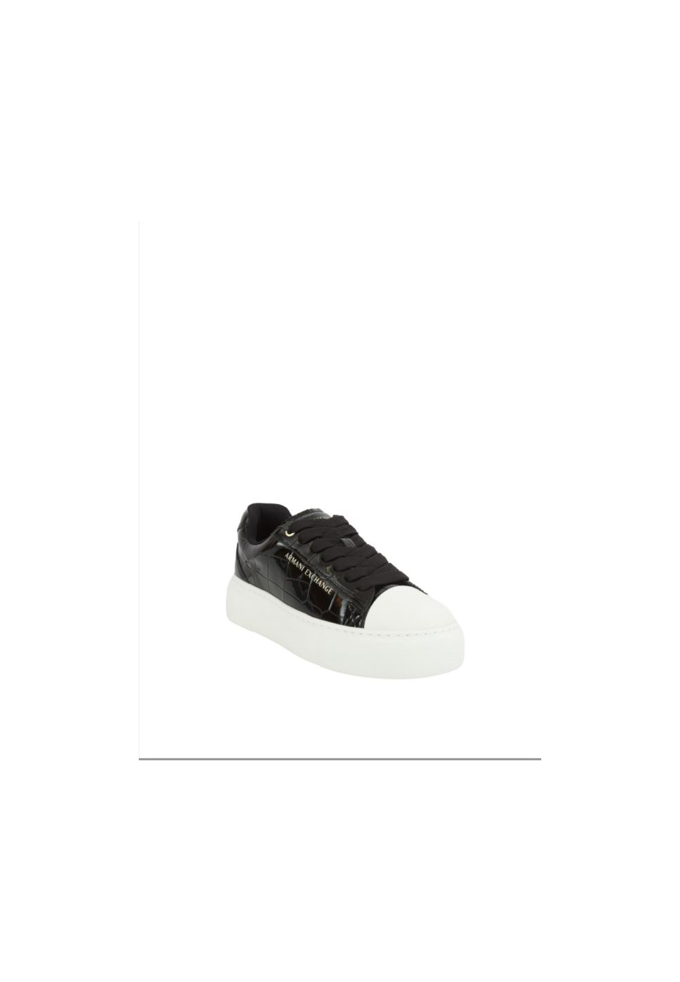 Le sneakers donna Armani Exchange in ecopelle nera lucida effetto coccodrillo rappresentano un perfetto equilibrio tra raffinatezza ed energia metropolitana. Ideali per la donna che cerca una calzatura comoda senza rinunciare allo stile, queste sneakers sono pensate per completare outfit sia casual che più ricercati.