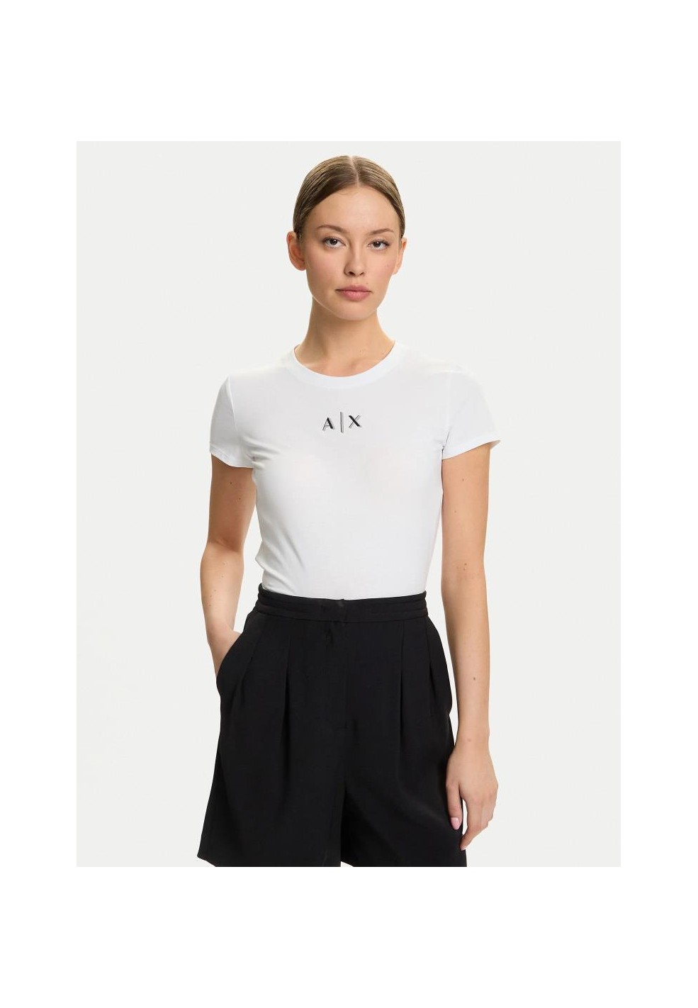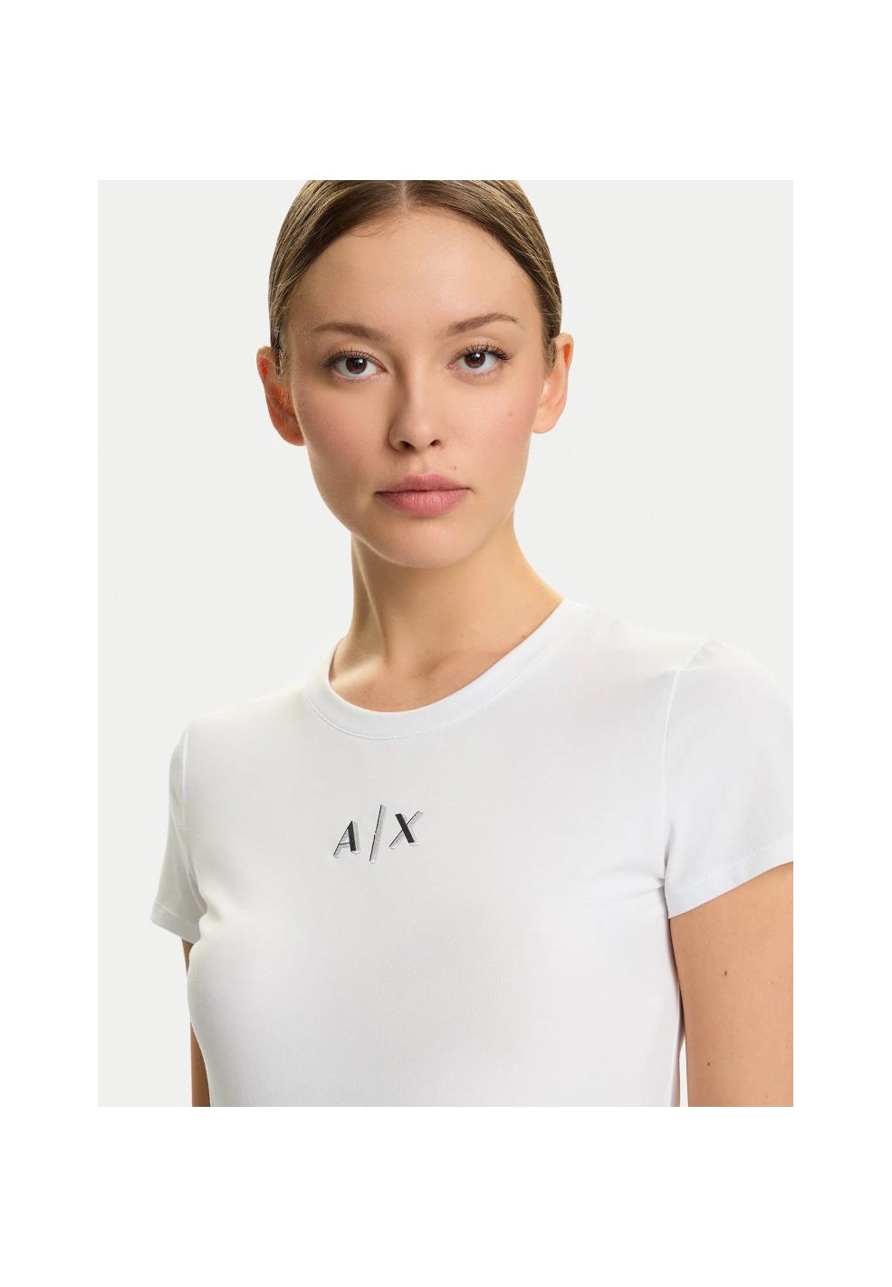 La T-shirt slim fit da donna Armani Exchange rappresenta uno dei capi più versatili e indispensabili del guardaroba moderno. Sinonimo di semplicità raffinata, questa maglietta è realizzata in un tessuto di alta qualità composto da 92% cotone e 8% elastan, una combinazione che assicura morbidezza, freschezza e una vestibilità aderente ma confortevole.