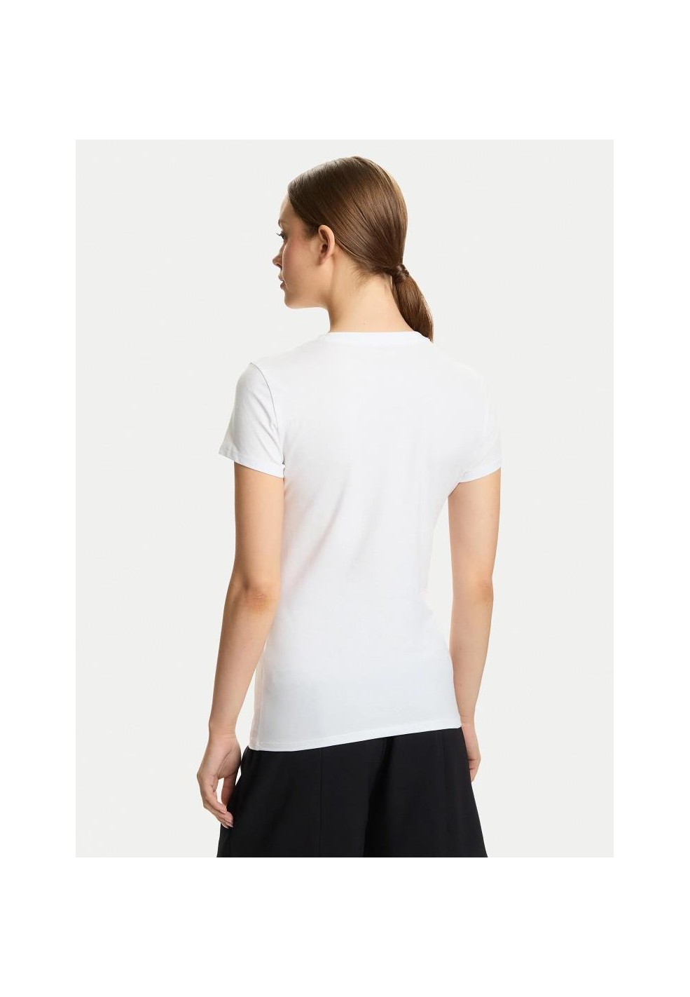Il design minimalista ed elegante rende questa T-shirt un capo passe-partout, perfetto per ogni occasione. Indossata con jeans e sneakers, diventa la base ideale per un look casual e urbano, mentre abbinata a pantaloni sartoriali o a una gonna midi può trasformarsi in un elemento chiave di un outfit chic e contemporaneo.