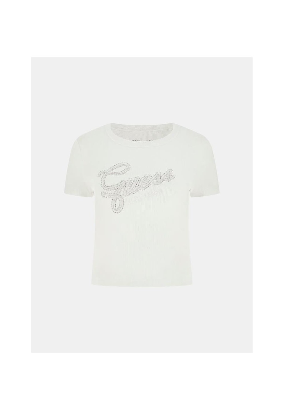 La T-shirt Guess Donna con logo in strass – codice W6RI22KA0H1 è un capo pensato per chi ama uno stile giovane, moderno e ricercato. Realizzata in tessuto a costine, segue delicatamente le forme del corpo, offrendo un equilibrio perfetto tra elasticità, comfort e femminilità. La vestibilità slim cropped la rende ideale da abbinare a pantaloni o gonne a vita alta, creando look armoniosi e sempre attuali.